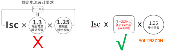 2021年2月,IEC61215/IEC61730:2021已發(fā)布,標(biāo)準(zhǔn)中增加了雙面組件的相關(guān)定義和描述。該標(biāo)準(zhǔn)推薦按照1.25xIsc-BSI 進(jìn)行零部件選型,請(qǐng)注意這里需要考慮雙面組件的雙面系數(shù)φ(目前,普遍的雙面系數(shù)φ約為70%)。根據(jù)歷次標(biāo)準(zhǔn)升級(jí)慣例,考慮到認(rèn)證機(jī)構(gòu)及實(shí)驗(yàn)室設(shè)備升級(jí)、資質(zhì)認(rèn)可,2021版標(biāo)準(zhǔn)的正式執(zhí)行還需數(shù)月至數(shù)年時(shí)間。然而,《無(wú)法忽視的真相》一文,生搬硬套錯(cuò)誤的標(biāo)準(zhǔn)并缺乏深度理解,這是完全不了解產(chǎn)品和標(biāo)準(zhǔn)的表現(xiàn)。
