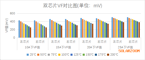 經(jīng)測(cè)試發(fā)現(xiàn),同一個(gè)晶圓上的2個(gè)芯片在封裝之后VF不超過(guò)3mV,這個(gè)差值在整個(gè)二極管的壓降中僅約1%,在測(cè)試誤差范圍之內(nèi),而《無(wú)法忽視的真相》一文中直接按50mV模擬分析,完全是脫離實(shí)際數(shù)據(jù)的猜想。
