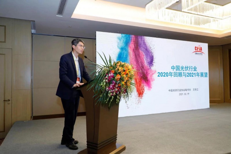 論壇上,中國光伏行業(yè)協(xié)會王世江秘書長做了題為《2020年中國光伏行業(yè)回顧和2021年中國光伏行業(yè)展望》的主題演講。王秘書長指出,2020年,國內(nèi)光伏電站裝機規(guī)模持續(xù)提升,投資成本繼續(xù)下降,產(chǎn)業(yè)集中度快速提升,技術(shù)不斷發(fā)展,融資規(guī)模不斷擴大,國際化布局不斷加強;展望2021年,全球光伏市場規(guī)模將加速擴大,源網(wǎng)荷儲一體化和多能互補大基地將成為電站開發(fā)關(guān)注熱點,技術(shù)快速迭代,行業(yè)將迎來擴產(chǎn)潮,“光伏+”模式帶來更多應用可能性,預計光伏將占據(jù)可再生能源增量市場半壁江山。
