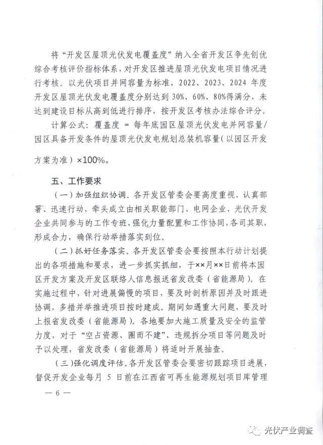 近日,江西省發(fā)改委印發(fā)《江西省整體推進(jìn)開發(fā)區(qū)屋頂分布式光伏建設(shè)三年行動(dòng)計(jì)劃(2022-2024年)(征求意見稿)》。明確提出建設(shè)目標(biāo):按照“宜建盡建”的布局原則,大力推動(dòng)開發(fā)區(qū)屋頂分布式光伏開發(fā),經(jīng)過三年努力,有效提升開發(fā)區(qū)電力系統(tǒng)安全保障能力。