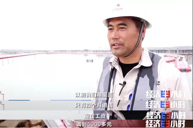 這天,周金飛他們整整賣了十車魚,拿到了1000元獎金。他現在不僅拿工資、領獎金,還有五險一金的待遇保障。工資、獎金、湖面租金,一年收入將近十萬元。