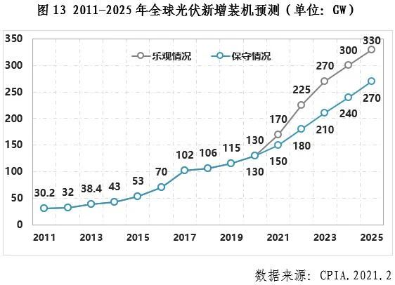 (二)我國光伏市場將進(jìn)入快速發(fā)展新階段2021年是“十四五”規(guī)劃的開局之年,也是我國光伏發(fā)電進(jìn)入平價上網(wǎng)的關(guān)鍵之年。2021年我國光伏應(yīng)用市場將繼續(xù)保持快速增長勢頭,預(yù)計新增裝機(jī)規(guī)??蛇_(dá)55-65GW,其中競價結(jié)轉(zhuǎn)項(xiàng)目10GW左右,戶用市場有望達(dá)到15GW,工商業(yè)分布式預(yù)計在10GW左右,外送及平價地面電站在20-30GW左右。在“碳達(dá)峰、碳中和”目標(biāo)下, “十四五”期間我國光伏市場將迎來市場化建設(shè)高峰,預(yù)計國內(nèi)年均光伏裝機(jī)新增規(guī)模在70-90GW,有望進(jìn)一步加速我國能源轉(zhuǎn)型。