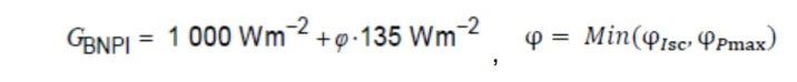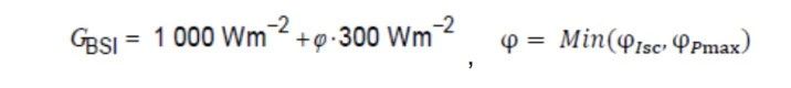 增加雙面組件的熱循環(huán)測(cè)試注入的電流要求,可根據(jù)電流與輻照度的線性關(guān)系,按照如下公式計(jì)算: