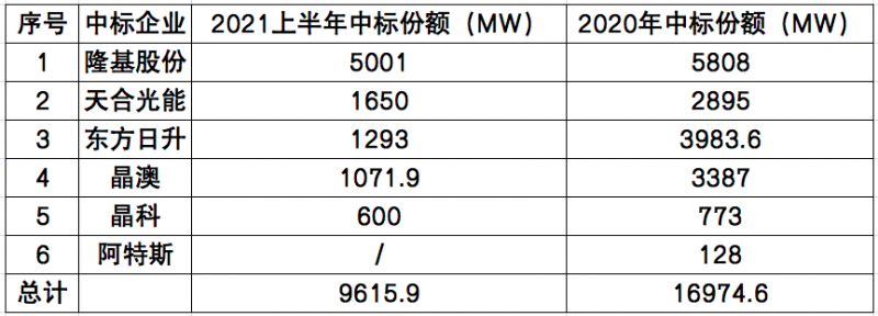 自年初中核集團(tuán)開啟2021年首次大規(guī)模組件招標(biāo)以來,截止到2021年6月底,國(guó)內(nèi)以大唐、華電、中核為代表的電力央企已經(jīng)陸續(xù)完成逾29GW的光伏組件招標(biāo)與定標(biāo)工作。