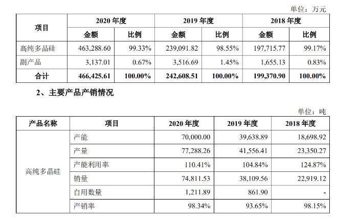 新疆大全表示,2019 年下半年公司投產(chǎn)了年產(chǎn) 3.5 萬噸高純多晶硅產(chǎn)能后,目前產(chǎn)能已達到 7 萬噸/年,產(chǎn)能規(guī)模在業(yè)內(nèi)處于第一梯隊。