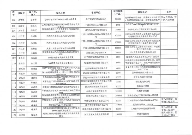 江西省2021年第二批光伏發(fā)電規(guī)劃近期庫(kù)調(diào)整納入項(xiàng)目共232個(gè)、1454.79萬(wàn)千瓦項(xiàng)目,其中