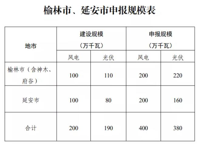 申報(bào)方面,《方案》為保障市級權(quán)限,落實(shí)項(xiàng)目責(zé)任,本次按照7.8GW的建設(shè)規(guī)模申報(bào),申報(bào)規(guī)模達(dá)不到要求的,榆林、延安兩市之間可以替補(bǔ)。項(xiàng)目單體規(guī)模不低于100MW。