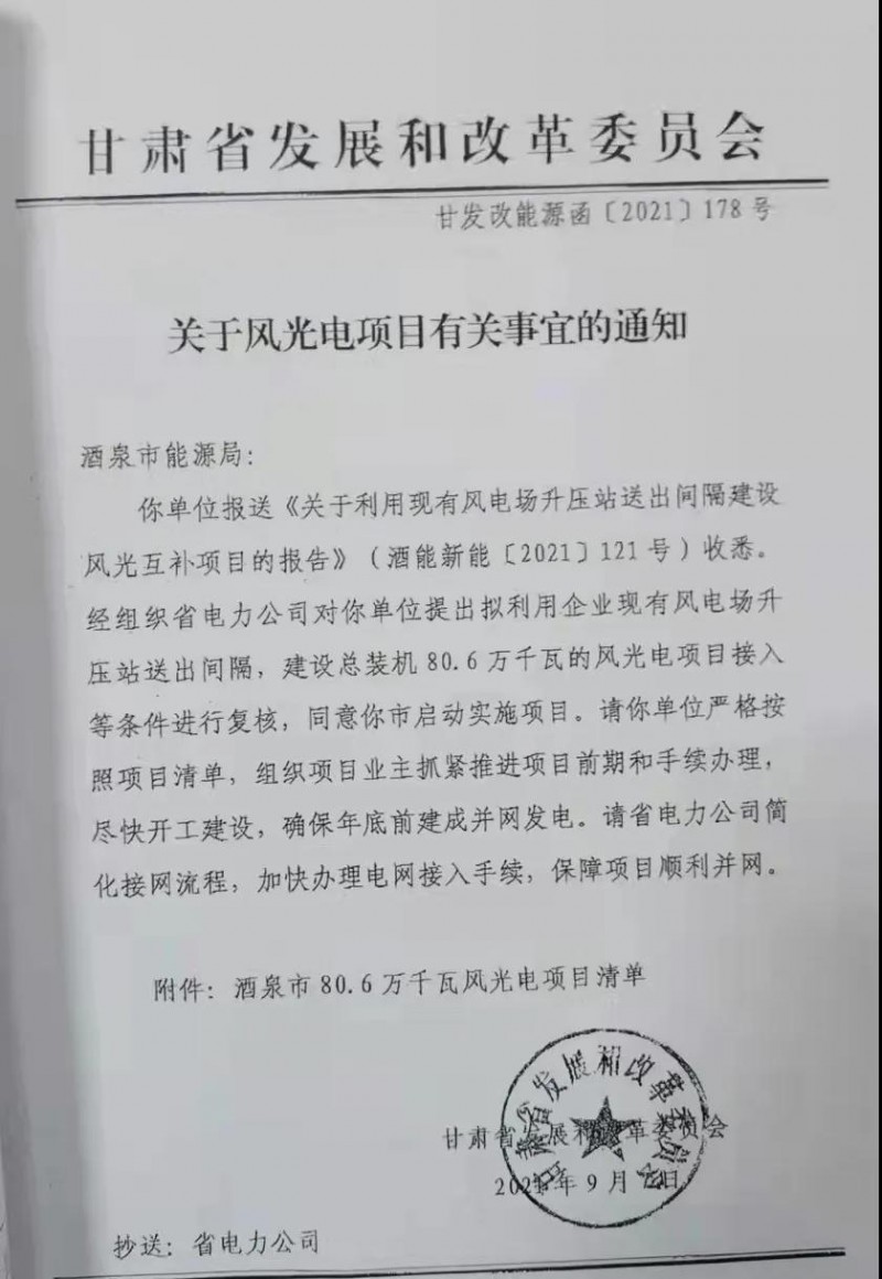 酒泉市能源局也下發(fā)相應(yīng)文件要求項(xiàng)目在9月底前開工建設(shè)每間隔10天,在每月的9日、19日、29日向酒泉能源局定期匯報(bào)項(xiàng)目推進(jìn)情況,加快項(xiàng)目建設(shè)進(jìn)程,確保項(xiàng)目盡快建成并網(wǎng)。