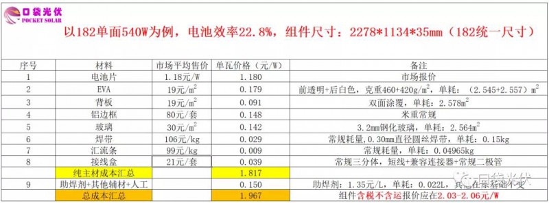 太多的分析在如今的大環(huán)境下顯得很蒼白,故小編制作了組件價(jià)格拆分表供大家參考,如下: