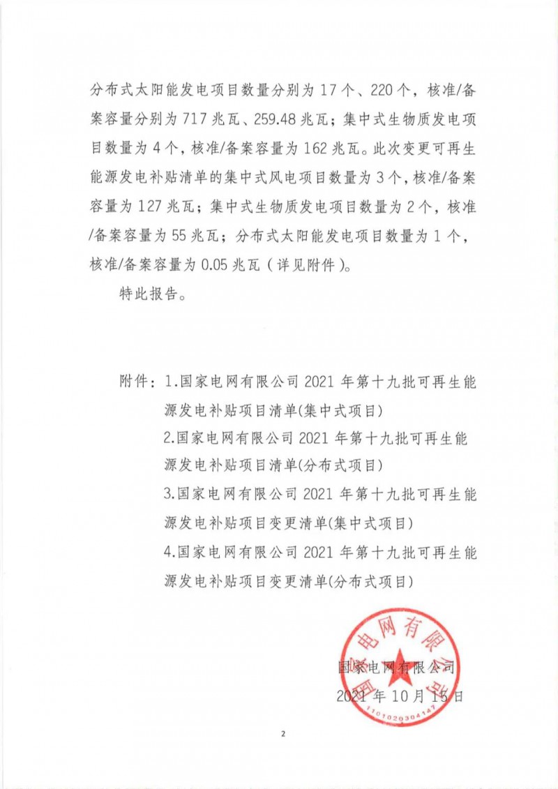 關(guān)于公布2021年第十九批可再生能源發(fā)電