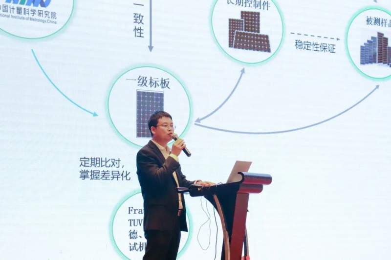 中國(guó)計(jì)量院光學(xué)所室主任助理蔡川,針對(duì)光伏行業(yè)常見的功率測(cè)試,分享了《太陽模擬器特性對(duì)光伏組件光電性能測(cè)試》的報(bào)告,提出了光伏組件光電性能測(cè)試的重要性,論述了光伏量值傳遞溯源體系,最后針對(duì)太陽模擬器特性對(duì)光伏組件光電性能測(cè)試影響的因素進(jìn)行了分析。