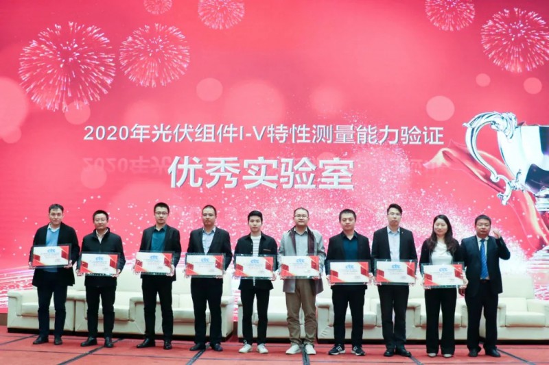 此次會(huì)議對(duì)常熟阿特斯陽光電力科技有限公司光伏測(cè)試中心、常州亞瑪頓股份有限公司中心實(shí)驗(yàn)室、滁州隆基樂葉光伏科技有限公司檢測(cè)中心、東方日升新能源股份有限公司實(shí)驗(yàn)室、海寧正泰新能源科技有限公司光伏檢測(cè)中心、合肥晶澳太陽能科技有限公司實(shí)驗(yàn)室、環(huán)晟光伏(江蘇)有限公司檢測(cè)實(shí)驗(yàn)室、江蘇隆基樂葉光伏科技有限公司檢測(cè)中心、江蘇賽拉弗光伏系統(tǒng)有限公司產(chǎn)品檢測(cè)中心、晉能清潔能源科技股份公司實(shí)驗(yàn)中心、晶科能源股份有限公司檢測(cè)中心(江西上饒)、晶科能源股份有限公司檢測(cè)中心(浙江海寧)、上海晶澳太陽能科技有限公司檢測(cè)中心、泰州隆基樂葉光伏科技有限公司檢測(cè)中心、泰州中來光電科技有限公司檢測(cè)中心、通威太陽能(合肥)有限公司光伏實(shí)驗(yàn)中心、無錫尚德太陽能電力有限公司光伏產(chǎn)品檢驗(yàn)實(shí)驗(yàn)室、張家港協(xié)鑫集成科技有限公司檢測(cè)中心、浙江隆基樂葉光伏科技有限公司檢測(cè)中心、浙江正泰新能源開發(fā)有限公司光伏檢測(cè)中心、中建材浚鑫科技有限公司光伏產(chǎn)品檢測(cè)中心、中節(jié)能太陽能科技(鎮(zhèn)江)有限公司,共計(jì)22家實(shí)驗(yàn)室,頒發(fā)了“2020年光伏組件I-V特性測(cè)量能力驗(yàn)證 優(yōu)秀實(shí)驗(yàn)室”獎(jiǎng),對(duì)東方日升新能源股份有限公司實(shí)驗(yàn)室、海寧正泰新能源科技有限公司光伏檢測(cè)中心、合肥晶澳太陽能科技有限公司實(shí)驗(yàn)室、上海晶澳太陽能科技有限公司檢測(cè)中心,共計(jì)4家實(shí)驗(yàn)室,頒發(fā)了“CTC國(guó)檢集團(tuán)優(yōu)秀合作實(shí)驗(yàn)室”獎(jiǎng)。