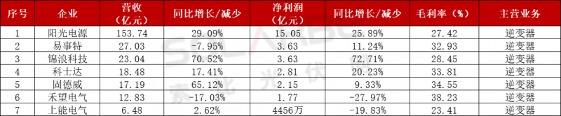 逆變器企業(yè)來(lái)看,7家逆變器企業(yè)Q1~Q3均實(shí)現(xiàn)盈利,2家企業(yè)凈利潤(rùn)同比去年同期下滑,其中禾望電氣毛利率達(dá)38.23%、固德威34.55%、科士達(dá)33.81%。