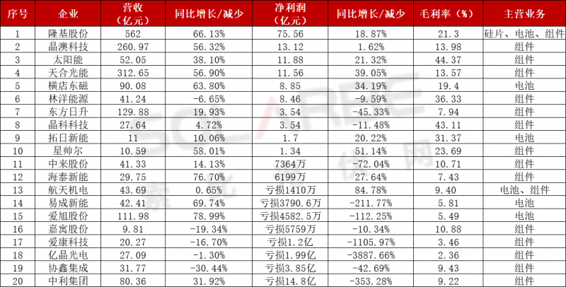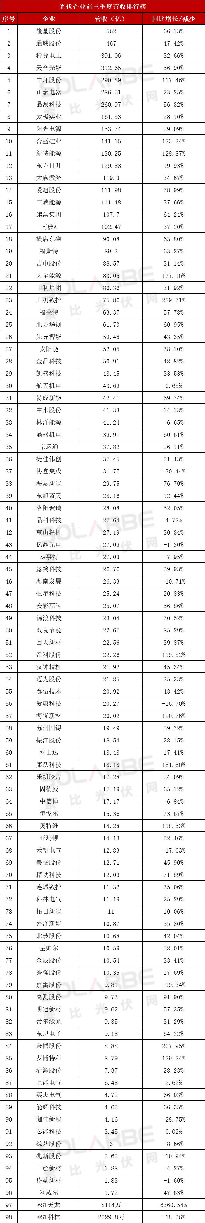 光伏企業(yè)前三季度營(yíng)收排行榜