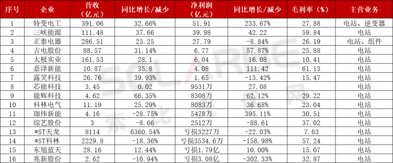 光伏企業(yè)前三季度凈利潤(rùn)同增排行榜