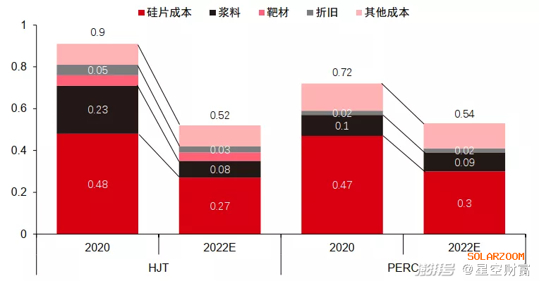 圖片:預(yù)計到 2022年HJT技術(shù)成本下降明顯