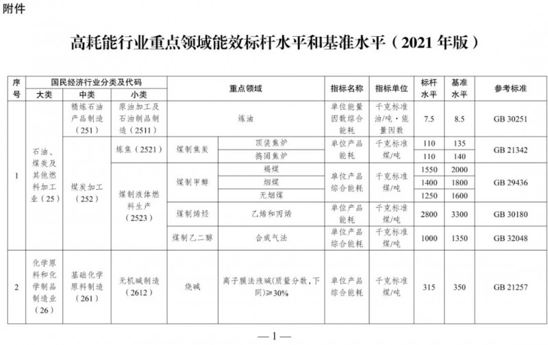 附件:高耗能行業(yè)重點領域能效標桿水平和基準水平(2021年版)