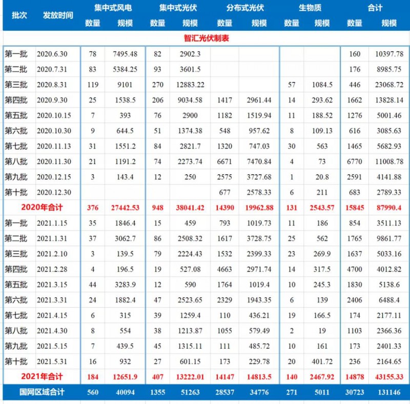除了進(jìn)入財(cái)政部前七批的補(bǔ)貼目錄之外,2020年6月份以來,國家電網(wǎng)每半個(gè)月就會公布一批新確權(quán)的項(xiàng)目。
