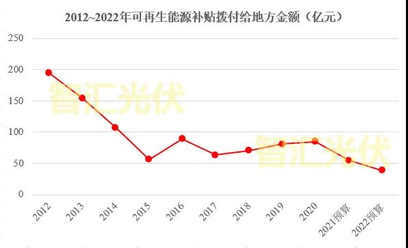 在補(bǔ)貼資金總量有限的情況下,剩給普通項(xiàng)目的資金就會變少。因此,發(fā)放給地方的補(bǔ)貼資金也會變少。2012年以來,財(cái)政部發(fā)給地方電網(wǎng)的補(bǔ)貼資金金額如下表所示。