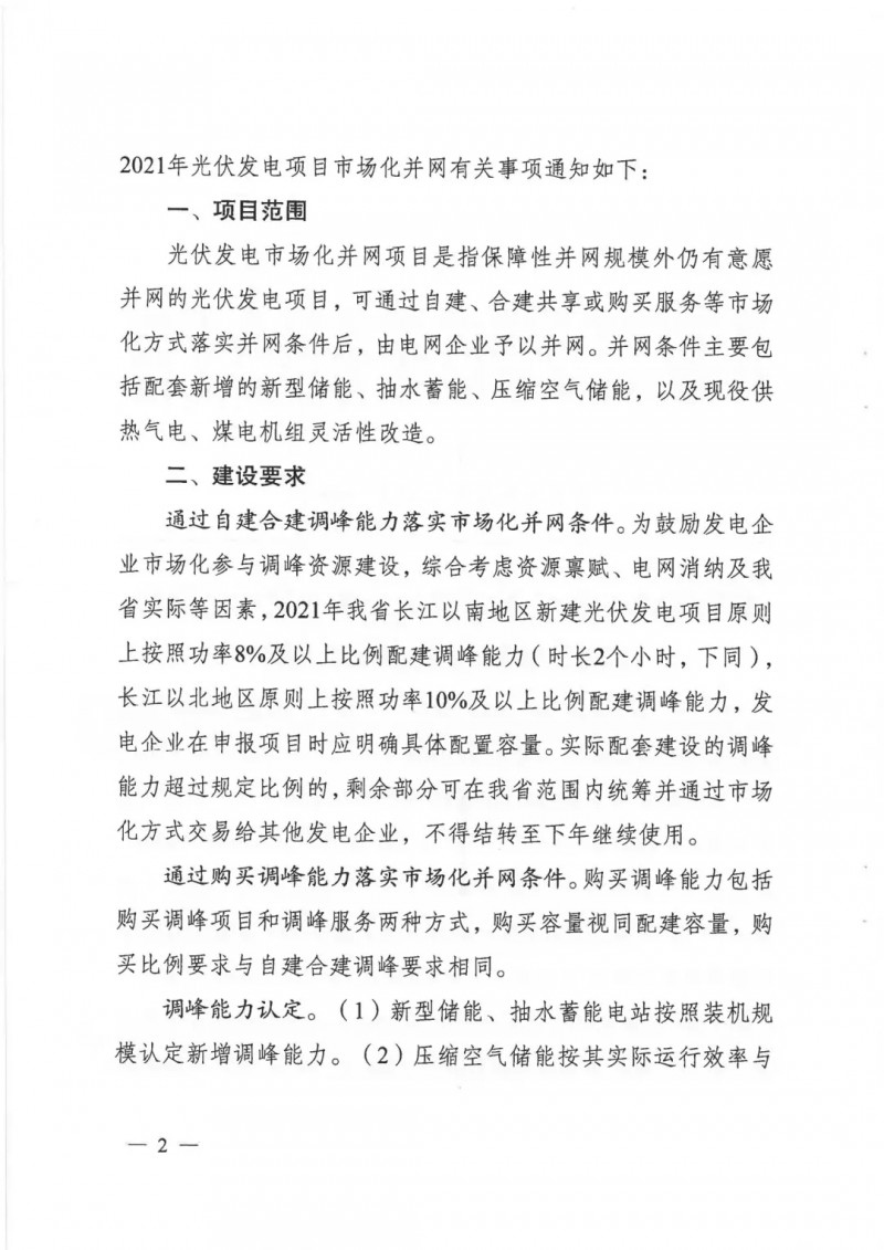 江蘇啟動(dòng)光伏發(fā)電市場(chǎng)化項(xiàng)目申報(bào):長(zhǎng)江南、北配比8%及10%/2h儲(chǔ)能