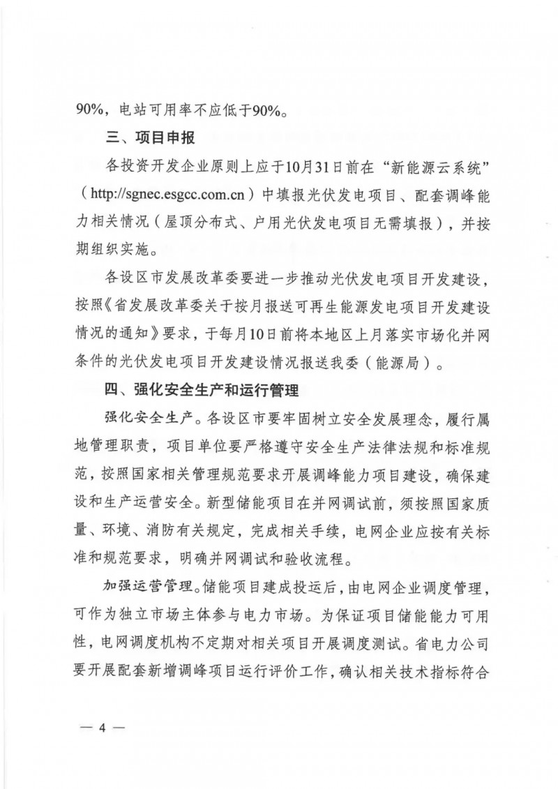 此外,文件要求各投資開(kāi)發(fā)企業(yè)原則上應(yīng)于10月31日前在“新能源云系統(tǒng)”中填報(bào)光伏發(fā)電項(xiàng)目、配套調(diào)峰能力相關(guān)情況。2021年落實(shí)的市場(chǎng)化項(xiàng)目原則上應(yīng)于2023年6月底建成并網(wǎng);配套調(diào)峰能力原則上應(yīng)為2021年1月1日以后投產(chǎn)的項(xiàng)目,應(yīng)與光伏發(fā)電項(xiàng)目同步建成、同步并網(wǎng)。