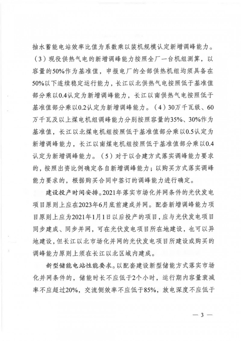 關(guān)于調(diào)峰能力認(rèn)定方面,文件明確,新型儲(chǔ)能、抽水蓄能按裝機(jī)規(guī)模認(rèn)定;壓縮空氣儲(chǔ)能按其實(shí)際運(yùn)行效率與抽水蓄能電站效率比值為系數(shù)進(jìn)行認(rèn)定;現(xiàn)役供熱氣電的新增調(diào)峰能力按照全廠一臺(tái)機(jī)組測(cè)算,以容量的50%作為基準(zhǔn)值,申報(bào)電廠的全部供熱機(jī)組均須具備在50%以下連續(xù)穩(wěn)定運(yùn)行能力,長(zhǎng)江以北、以南分別按照低于基準(zhǔn)值部分乘以0.4、0.2認(rèn)定為調(diào)峰能力;30萬(wàn)千瓦級(jí)、60萬(wàn)千瓦及以上煤電機(jī)組調(diào)峰能力分別按照容量的35%、30%作為基準(zhǔn)值,長(zhǎng)江以北、以南分別按照低于基準(zhǔn)部分乘以0.5、0.4認(rèn)為定新增調(diào)峰能力。