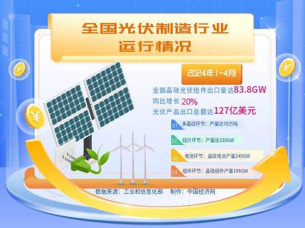我國(guó)光伏產(chǎn)業(yè)高位運(yùn)行 1-4月產(chǎn)品出口額達(dá)127億美元