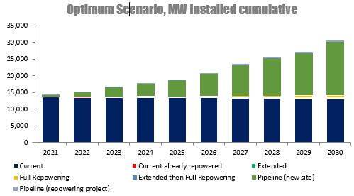 一年前,管道總?cè)萘繛?0GW。從2025年開始,可以看到部署量顯著增加。如果當(dāng)前管道中的每個(gè)項(xiàng)目都繼續(xù)進(jìn)行,到2030年英國的陸上風(fēng)電運(yùn)營容量將達(dá)到30GW,是英國目前13.9GW運(yùn)營能力的兩倍之多。