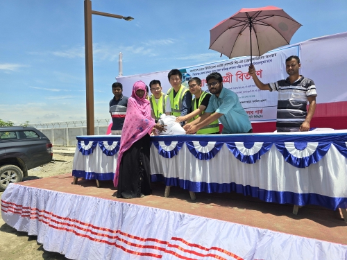 道阻且長,行則將至;知責(zé)于心,更要履責(zé)于行。面臨復(fù)雜的水陸河漫灘環(huán)境、沙地高樁技術(shù)難題、森林覆蓋率及雨季洪泛等難題,福建院與項(xiàng)目各方人員齊心協(xié)力,實(shí)現(xiàn)多項(xiàng)創(chuàng)新之舉。通過開創(chuàng)性地采用“高樁合縱”方案,有效避免了河漫灘水患影響,確保光伏高樁穩(wěn)固與美觀。開發(fā)的橇式光伏安裝工具,使得12米高空安裝光伏組件也可如履平地,刷新了孟加拉最高光伏組件樁的紀(jì)錄。在錫金水庫潰堤引起光伏區(qū)洪水沖擊期間,福建院迅速組織討論制作出施工浮船,有效解決風(fēng)浪影響和材料運(yùn)輸?shù)葐栴},大大節(jié)省施工時(shí)長,順利保障項(xiàng)目推進(jìn)與按時(shí)完工,以實(shí)際行動(dòng)踐行著央企的誠信與擔(dān)當(dāng)。