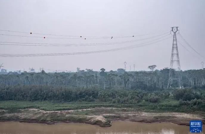 9月13日,在巴西朗多尼亞州,EDP輸變電項(xiàng)目線路穿越熱帶雨林和馬代拉河。新華社記者 王天聰 攝