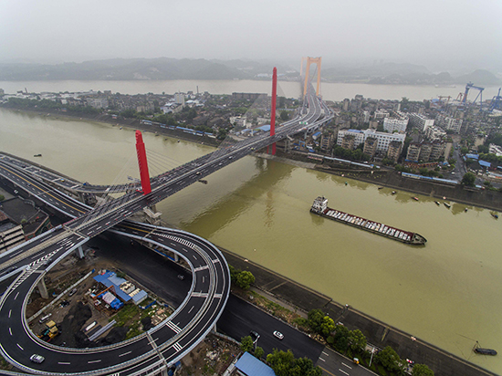 至喜長江大橋是湖北宜昌市建設(shè)的第六座長江大橋,葛洲壩路橋公司以BT模式投資參建了至喜長江大橋,并獨立承擔了三江橋與引橋、西壩立交與江北立交的全部施工任務(wù),于2016年7月正式建成通車試運營。在施工過程中,葛洲壩路橋公司始終堅持科技創(chuàng)新,提升工程品質(zhì),攻克了不對稱弧形變截面薄翼板箱梁掛籃施工技術(shù)、加高鏤空液壓爬架翻模施工技術(shù)、塔吊大橫桿超長附作技術(shù)、快速拼裝0號塊支架施工技術(shù)、鋼混結(jié)合圍堰施工技術(shù)等關(guān)鍵技術(shù),取得了豐富的科技創(chuàng)新成果。研發(fā)的《中央索面不對稱弧形變截面箱梁斜拉橋施工關(guān)鍵技術(shù)》,被中國公路建設(shè)行業(yè)協(xié)會鑒定為國際先進,成功解決了斜拉橋施工中一系列技術(shù)難題,促進了該橋型在橋梁建設(shè)行業(yè)內(nèi)的發(fā)展。