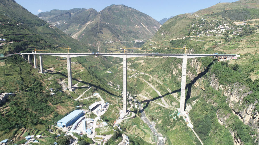 國慶期間,具有“世界第一高鋼管混凝土格構(gòu)空心橋墩”的金陽河特大橋順利合龍,該橋計(jì)劃于本年度12月建成通車。