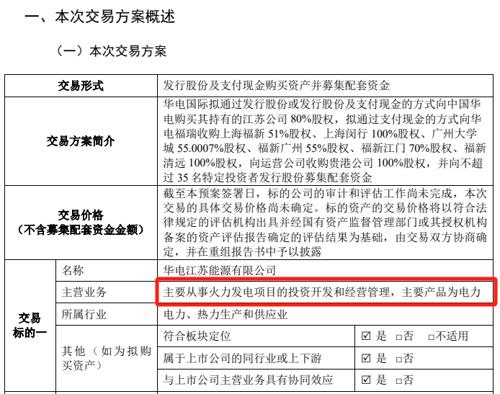 首先,華電國(guó)際擬通過發(fā)行股份或發(fā)行股份及支付現(xiàn)金的方式,向中國(guó)華電購(gòu)買其持有的華電江蘇能源有限公司(以下簡(jiǎn)稱江蘇公司)80%股權(quán)。