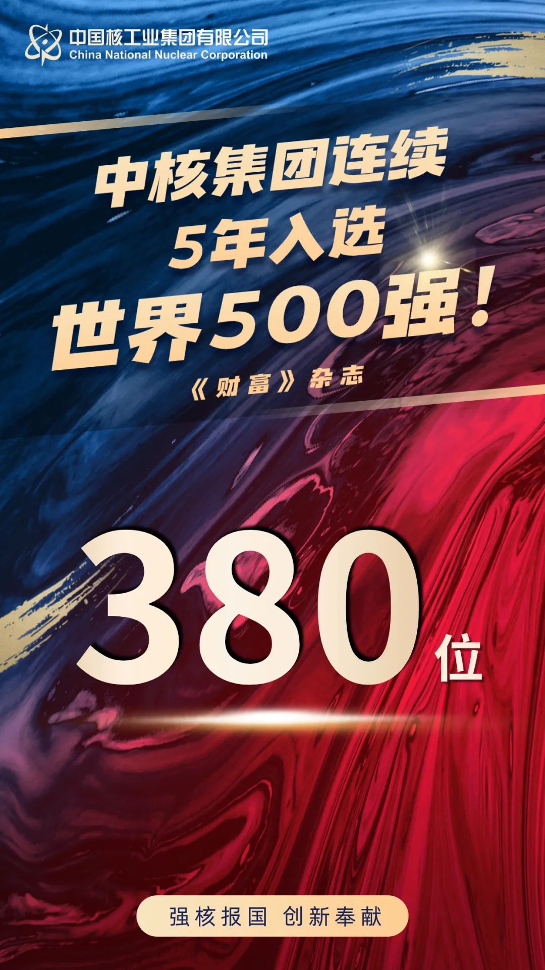 北京時間8月5日,《財富》雜志最新一期世界500強(qiáng)排名揭曉,中核集團(tuán)再度榮登榜單,連續(xù)五年穩(wěn)居其中,位列第380位!