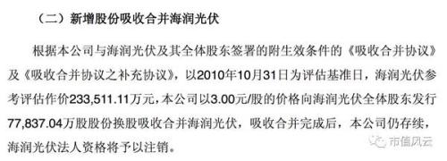 根據(jù)報(bào)告書,原海潤(rùn)光伏2008年、2009年和2010年1~10月實(shí)現(xiàn)的凈利潤(rùn)分別為2.11億、0.26億(據(jù)說(shuō)是受金融危機(jī)影響)、2.7億,妥妥的優(yōu)質(zhì)資產(chǎn)。