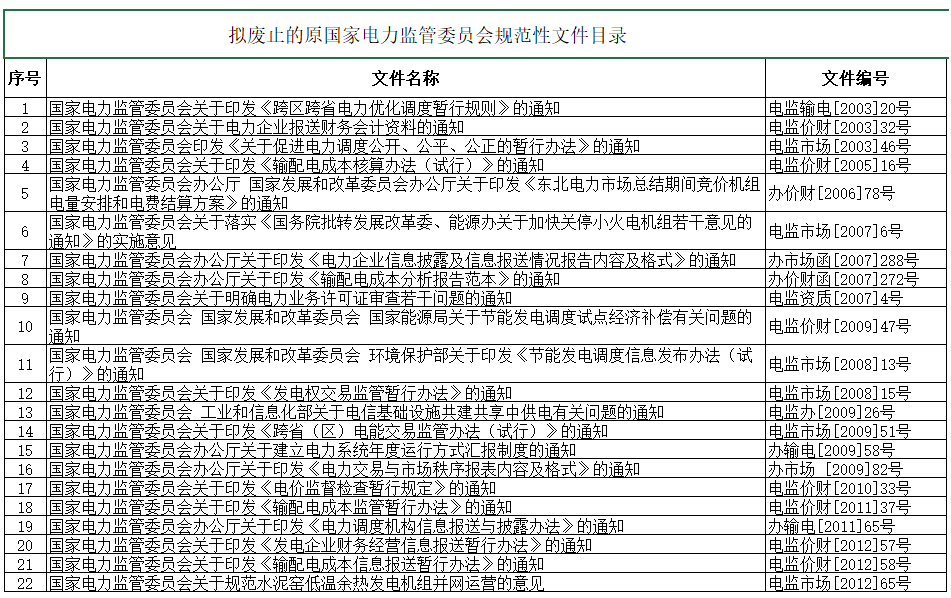 附件:擬廢止的原國(guó)家電力監(jiān)管委員會(huì)規(guī)范性文件目錄