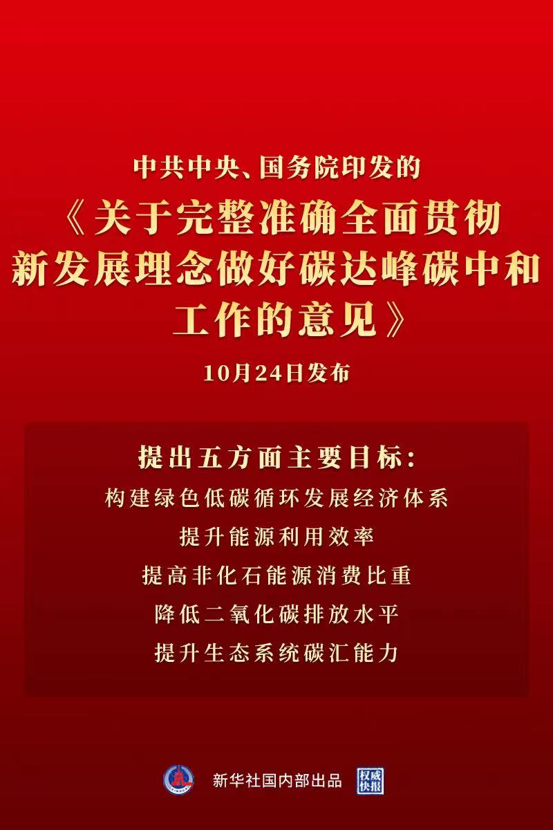 10月24日,中共中央 國務(wù)院正式發(fā)布《關(guān)于完整準確全面貫徹新發(fā)展理念做好碳達峰碳中和工作的意見》,內(nèi)容極其豐富。文件強調(diào):