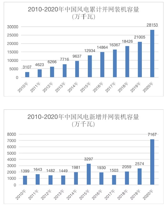 以下是歷年中國風(fēng)電累計(jì)裝機(jī)量和新增裝機(jī)量情況(數(shù)據(jù)來源:國家能源局)。