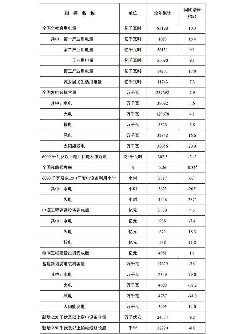 注:1.全社會用電量為全口徑數(shù)據(jù),全國供電量為調(diào)度口徑數(shù)據(jù)。2.“同比增長”列中,標(biāo)*的指標(biāo)為絕對量;標(biāo)▲的指標(biāo)為百分點。