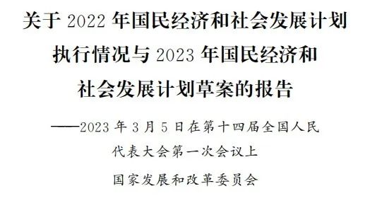 受國務(wù)院委托,現(xiàn)將2022年國民經(jīng)濟和社會發(fā)展計劃執(zhí)行 情況與2023年國民經(jīng)濟和社會發(fā)展計劃草案提請十四屆全國人 大一次會議審查,并請全國政協(xié)各位委員提出意見。