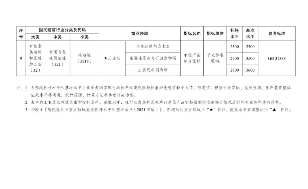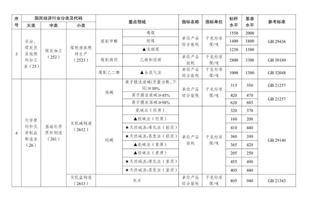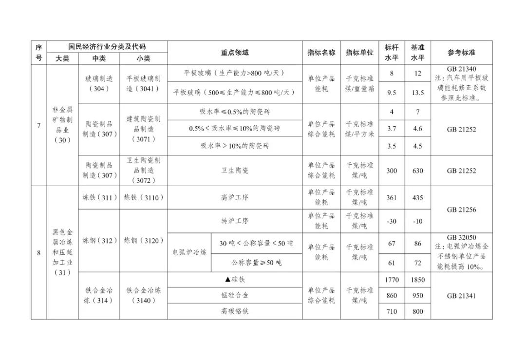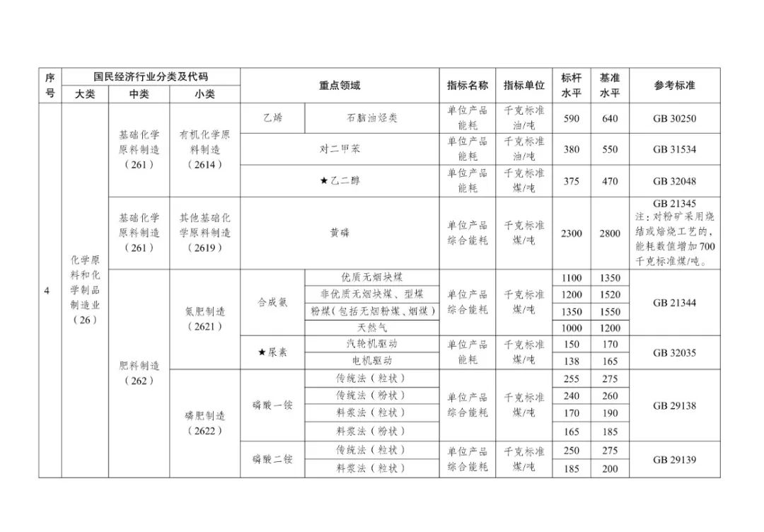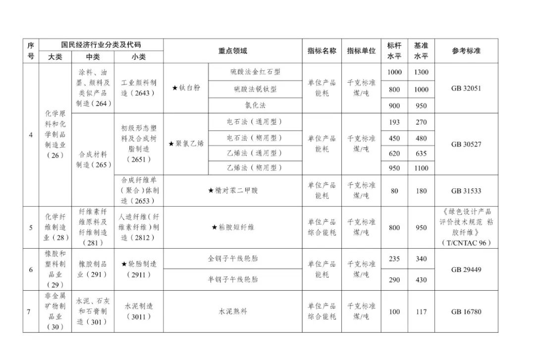 結(jié)合工業(yè)重點(diǎn)領(lǐng)域產(chǎn)品能耗、規(guī)模體量、技術(shù)現(xiàn)狀和改造潛力等,進(jìn)一步拓展能效約束領(lǐng)域。在此前明確煉油、煤制焦炭、煤制甲醇、煤制烯烴、煤制乙二醇、燒堿、純堿、電石、乙烯、對(duì)二甲苯、黃磷、合成氨、磷酸一銨、磷酸二銨、水泥熟料、平板玻璃、建筑陶瓷、衛(wèi)生陶瓷、煉鐵、煉鋼、鐵合金冶煉、銅冶煉、鉛冶煉、鋅冶煉、電解鋁等25個(gè)重點(diǎn)領(lǐng)域能效標(biāo)桿水平和基準(zhǔn)水平的基礎(chǔ)上,增加乙二醇,尿素,鈦白粉,聚氯乙烯,精對(duì)苯二甲酸,子午線輪胎,工業(yè)硅,衛(wèi)生紙?jiān)垺⒓埥碓?,棉、化纖及混紡機(jī)織物,針織物、紗線,粘膠短纖維等11個(gè)領(lǐng)域,進(jìn)一步擴(kuò)大工業(yè)重點(diǎn)領(lǐng)域節(jié)能降碳改造升級(jí)范圍。