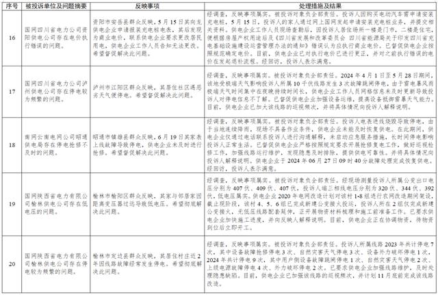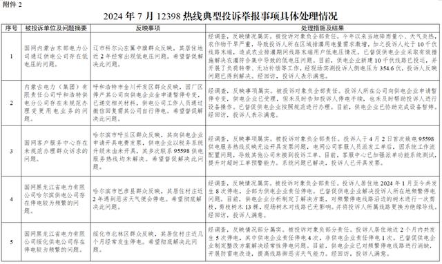 針對群眾反映的投訴舉報,國家能源局派出機(jī)構(gòu)嚴(yán)格根據(jù)國家有關(guān)法規(guī)政策規(guī)定進(jìn)行處理。一是督促供電企業(yè)加強臺區(qū)等設(shè)備改造力度,縮短供電半徑,提高電網(wǎng)轉(zhuǎn)供、互供能力,解決故障停電、低電壓等電能質(zhì)量問題;二是要求供電企業(yè)加強設(shè)備隱患排查整治、停電搶修管理,加大線路巡視頻次,及時消除隱患缺陷,增加搶修資源投入,提升設(shè)備管控和停電搶修能力,切實提高供電質(zhì)量;三是通過行政處罰、監(jiān)管約談、責(zé)令整改等方式,糾正有關(guān)企業(yè)違法違規(guī)行為,維護(hù)公平公正的市場秩序和群眾合法權(quán)益;四是通過解釋說明、澄清事實,消除群眾誤解。(2024年7月12398熱線典型投訴舉報事項具體處理情況,見附件2)