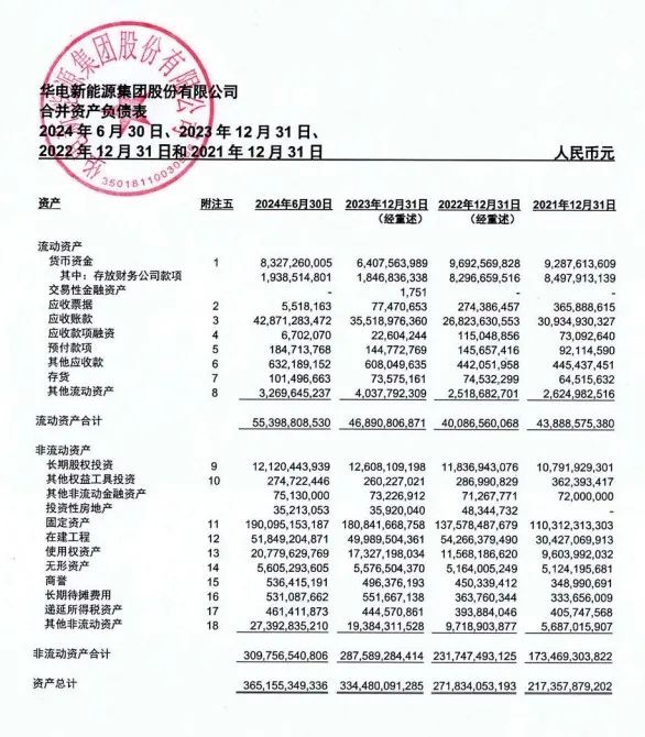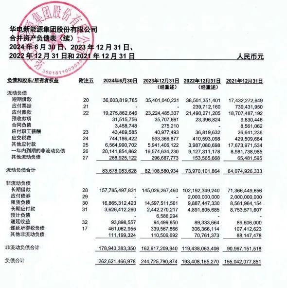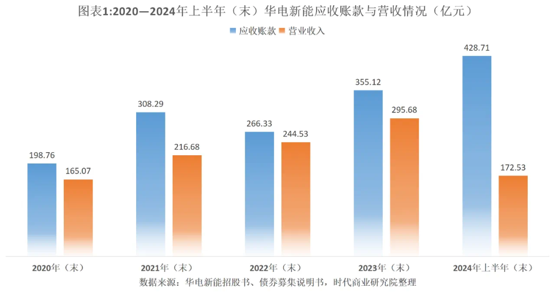 盡管華電新能在行業(yè)中占據(jù)領(lǐng)先地位,但其財(cái)務(wù)結(jié)構(gòu)與經(jīng)營(yíng)風(fēng)險(xiǎn)不容忽視。據(jù)公司合并資產(chǎn)負(fù)債表顯示,2024年6月30日,公司應(yīng)收賬款高達(dá)428.71億元,主要為可再生能源補(bǔ)貼,占營(yíng)收比例連續(xù)4年半超過(guò)100%,導(dǎo)致經(jīng)營(yíng)活動(dòng)現(xiàn)金流高度依賴(lài)外部融資。同時(shí),資產(chǎn)負(fù)債率長(zhǎng)期維持在70%以上,短期借款366億元,貨幣資金83.27億元,流動(dòng)性壓力顯著。