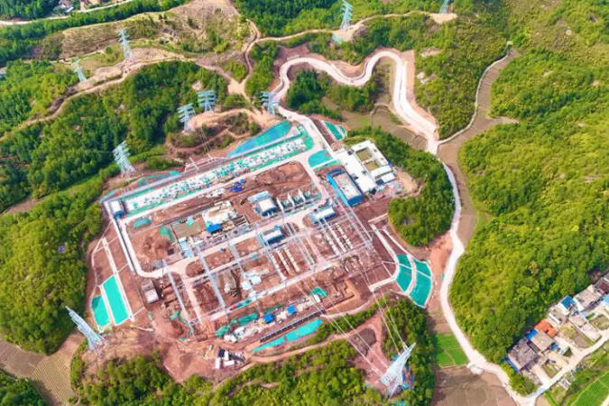 ▲閩贛背靠背聯(lián)網(wǎng)工程在福建的重要電源點——福建汀州500千伏變電站施工現(xiàn)場