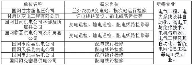 注意:如需應(yīng)聘表格以外國網(wǎng)甘肅電力其他各層級單位的畢業(yè)生,可繼續(xù)關(guān)注國網(wǎng)第一批統(tǒng)一招聘筆試公告