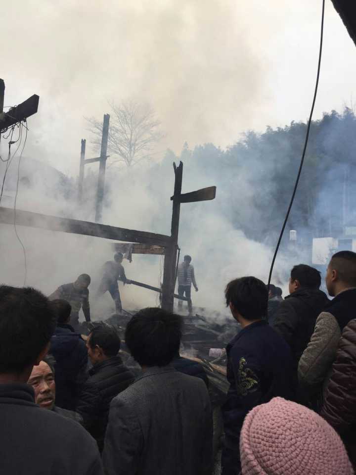 當(dāng)供電員工趕到現(xiàn)場時,現(xiàn)場火災(zāi)成猛烈之勢,不時傳出砰砰巨響和房梁倒塌的聲音,高噴的火焰已危及附近的供電線路,一片狼藉。搶險人員一邊迅速對公變臺區(qū)進(jìn)行緊急停電,切斷火災(zāi)用戶的電源開關(guān),將損失減到最?。灰贿叕F(xiàn)場裝設(shè)圍欄,拉起警戒線,隔離閑雜人員,防止滅火村民觸電造成的傷害。