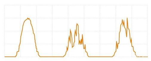 圖3為日本某光伏電站三天的實(shí)際發(fā)電曲線。該電站采用7倍容配比設(shè)計(jì),通過直流側(cè)加裝儲能系統(tǒng),實(shí)現(xiàn)光儲電站24小時(shí)發(fā)電,徹底解決了棄光和輸出功率波動(dòng)的問題。