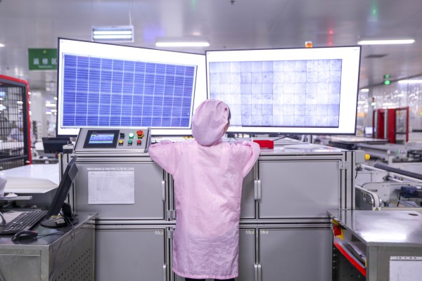 正泰新能源海寧工廠,工人正在進(jìn)行光伏組件EL檢測工序