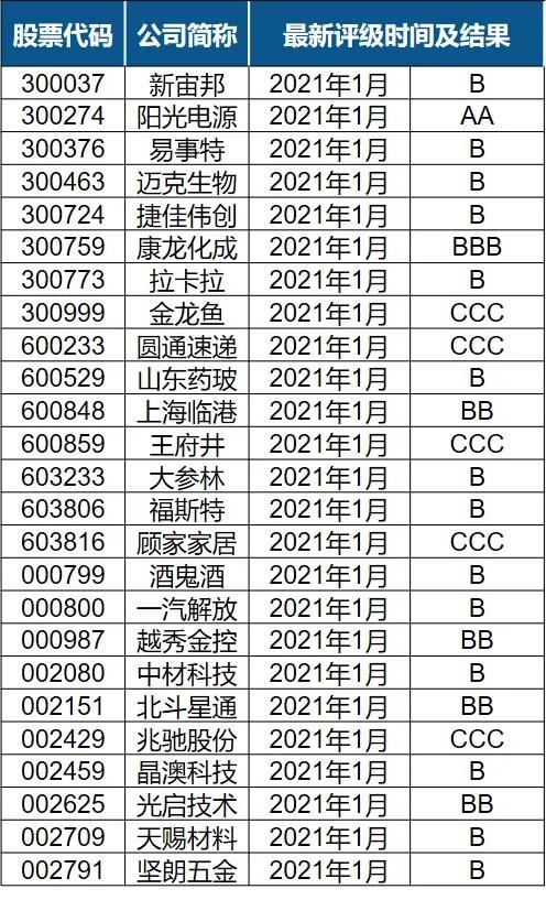 - 在評級保持不變的7家公司中,有4家仍然處于行業(yè)落后位置(3家B級、1家CCC級),有3家處于行業(yè)平均位置(2家BBB級、1家BB級)。