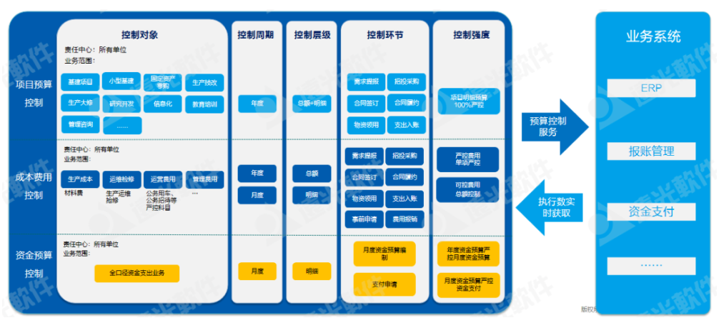 通過建立全方位、全流程、多周期、預(yù)算資金雙流雙控、預(yù)警監(jiān)控等控制體系,按照“無預(yù)算不開支、無預(yù)算不投資”原則,嚴(yán)控預(yù)算外經(jīng)濟(jì)行為,實(shí)現(xiàn)對財(cái)務(wù)資源使用過程的及時(shí)監(jiān)控,確保財(cái)務(wù)資源的使用安全,提升企業(yè)以財(cái)務(wù)管理為驅(qū)動(dòng)的經(jīng)營管理能力的提升,加強(qiáng)集團(tuán)對下屬單位的風(fēng)險(xiǎn)管控。